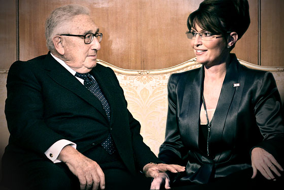 Further, pundits crowed that Sarah cozied up to Henry Kissinger, who briefed her about the crisis in Georgia. (No, honey, not that Georgia, the one next to Russia.) I feel so much better now, don’t you? A 30 minute cram course, and she’s good to go! A little face time with Karzai, and she’s an expert on Afghanistan. Brunch with Colombian President Uribe, and she’s ready to make trade agreements. . . And all I got when I went to New York was a stupid t-shirt.